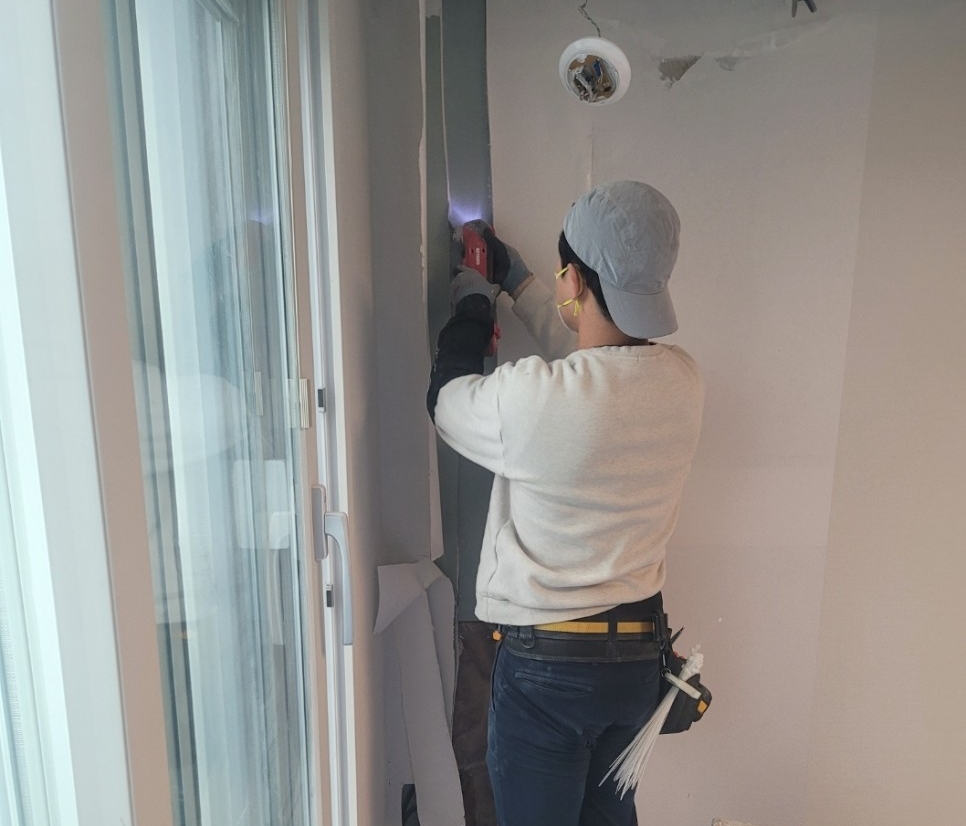 배관 작업을 마치고 원래대로 되돌렸습니다. 고객님들이 보시기에는 어떠신가요? 벽을 타공하고 도배를 벗긴 모습이 보이지 않아 깔끔하고 완성도 높은 작업물이라 생각됩니다. 이러한 디테일한 작업은 시공 업체의 오랜 경험과 노하우로 가능해졌습니다. 저희 업체는 이 분야에서 가장 완벽하고 깔끔한 작업을 자랑합니다.