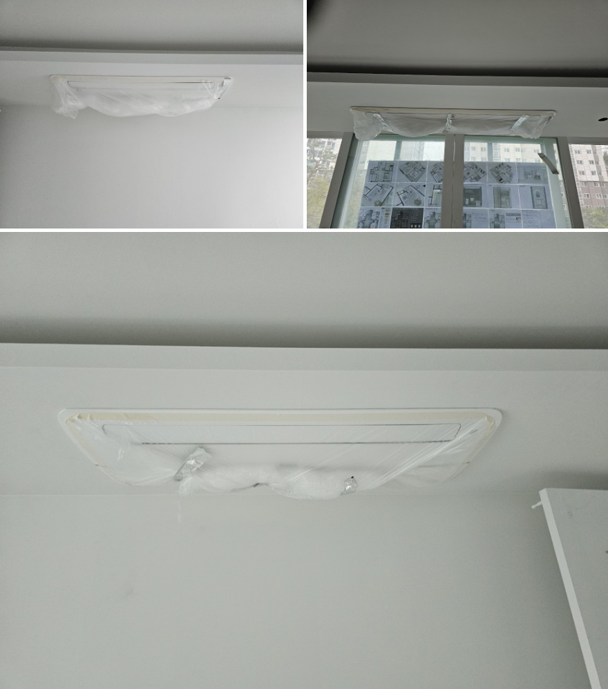 인테리어 업체와 협업! 공정에 맞춰 선배관, 실내외기 장착_우장산아이파크e편한세상 천장형 에어컨 설치 후기