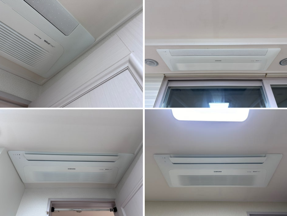 이렇게 기존 실내기 2대 교체 및 신규 실내기 2대 설치를 완료했습니다. 모든 공정이 끝난 후 시운전을 통해 시공에 이상이 없음을 확인한 뒤 현장을 떠났습니다.