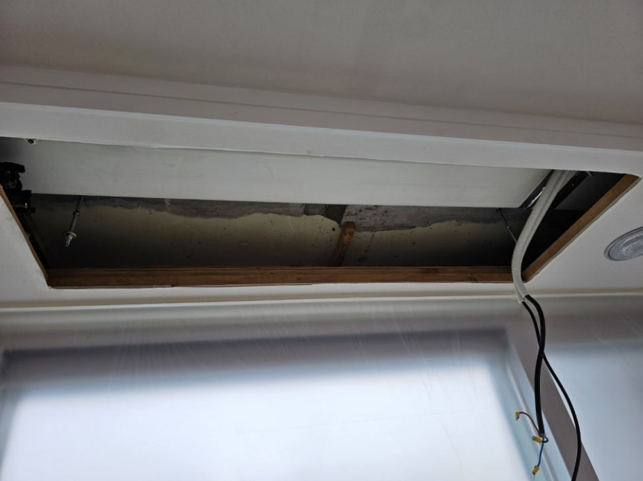 새로운 실내기 설치를 위해 기존 실내기를 제거한 모습입니다. 2010년에 완공된 아파트지만, 천장 속 공간이 상당히 여유로워 작업에 유리했습니다.