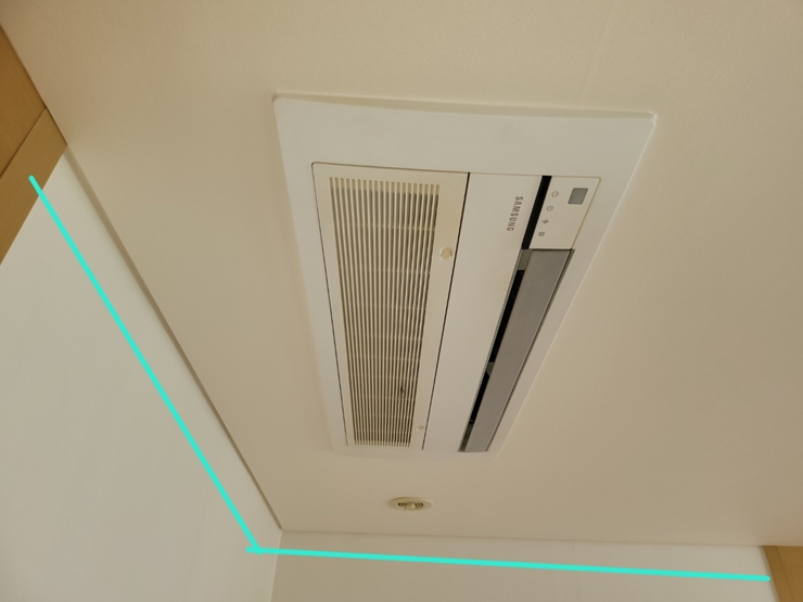 이번에 시공한 세대는 2004년 제조된 시스템 에어컨을 2005년부터 사용하여 20여 년이 지난 현재 노후화로 인해 교체가 필요한 상황이었습니다. 시스템 에어컨을 사용하던 세대는 처음 시공하는 곳보다 더 면밀한 사전 방문 조사가 필요합니다. 천장 속 배관의 루트를 파악하고 작업 과정에 대한 시뮬레이션도 필요하기 때문입니다.