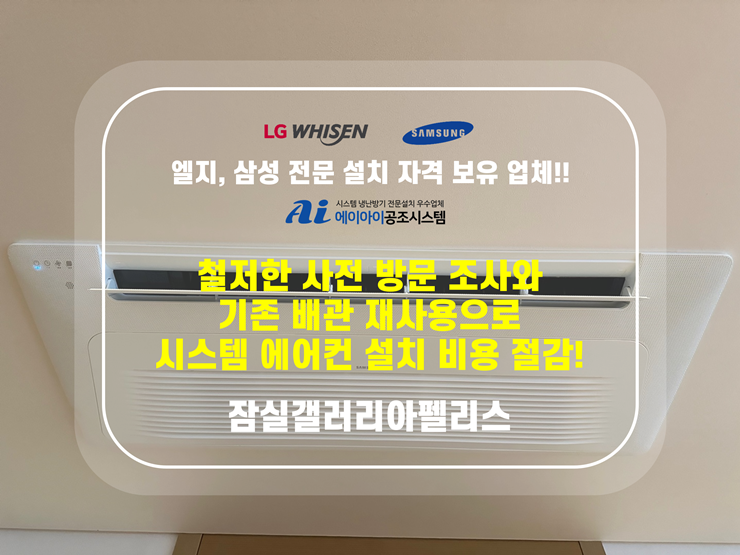 시공 전 현장 방문은 기본! 기존 배관 재사용으로 시스템 에어컨 설치 비용 절감! 잠실갤러리아펠리스 삼성 5대 시공