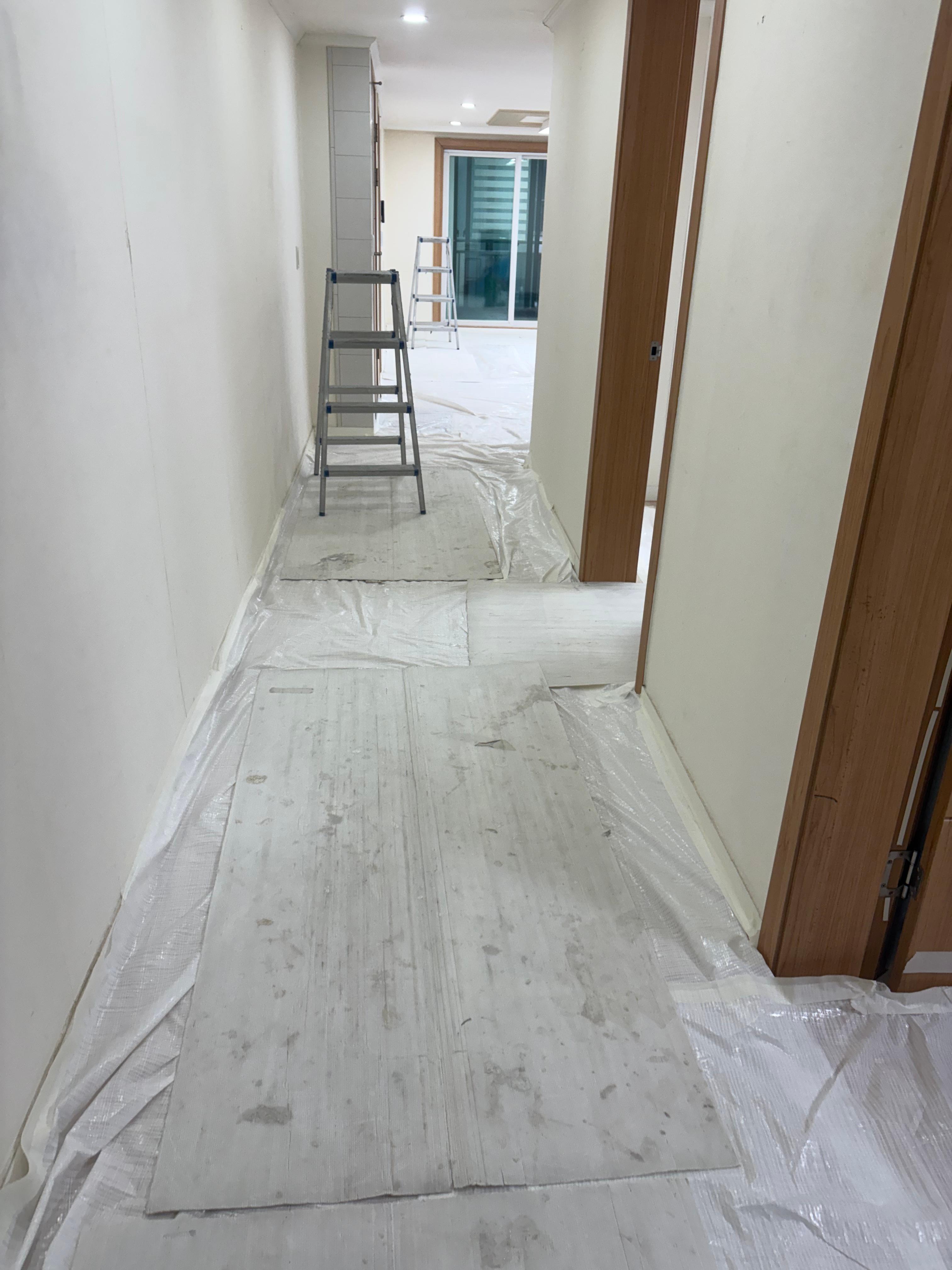 시공의 화려한 결과보다 중요한 것은 고객님이 머무시는 공간을 대하는 마음가짐이라 생각합니다. 거주 중인 세대이거나 설레는 입주를 앞둔 공간인 만큼, 작은 찍힘이나 먼지 하나도 허용하지 않도록 바닥과 벽면을 빈틈없이 감싸 안았습니다. 이 정성스러운 준비 과정이 있어야 비로소 안심하고 본 공사에 집중할 수 있습니다.